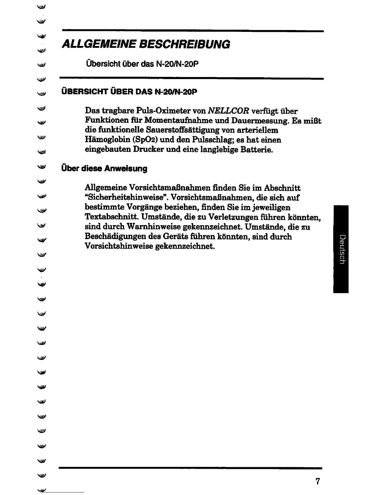 Nellcor N-20 - Allgemeine Beschreibung; Ubersicht Uber das N-20;N-20 P; Uber diese Anweisung