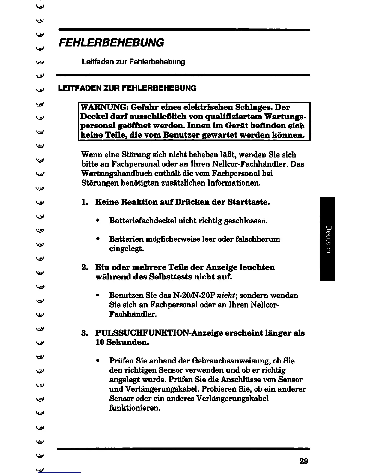 Nellcor N-20 - Fehlerbehebung; Leitfaden zur Fehlerbehebung