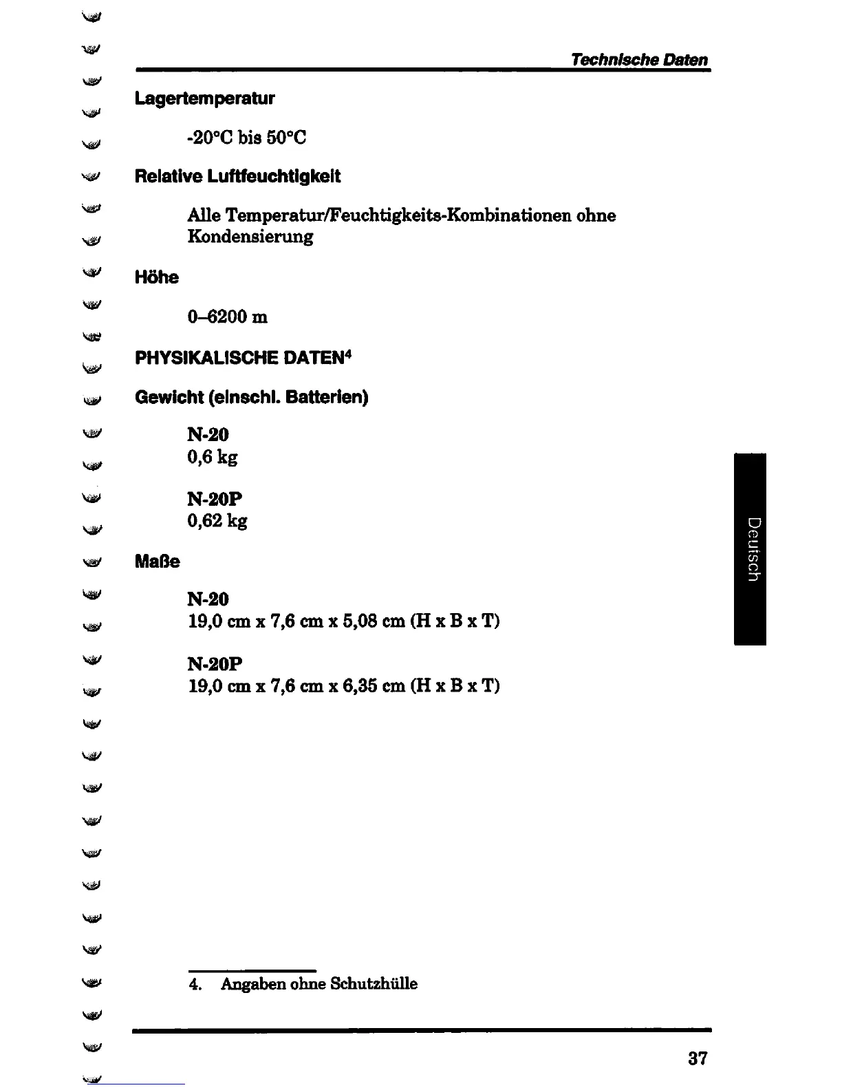 Nellcor N-20 - Physikalische Daten