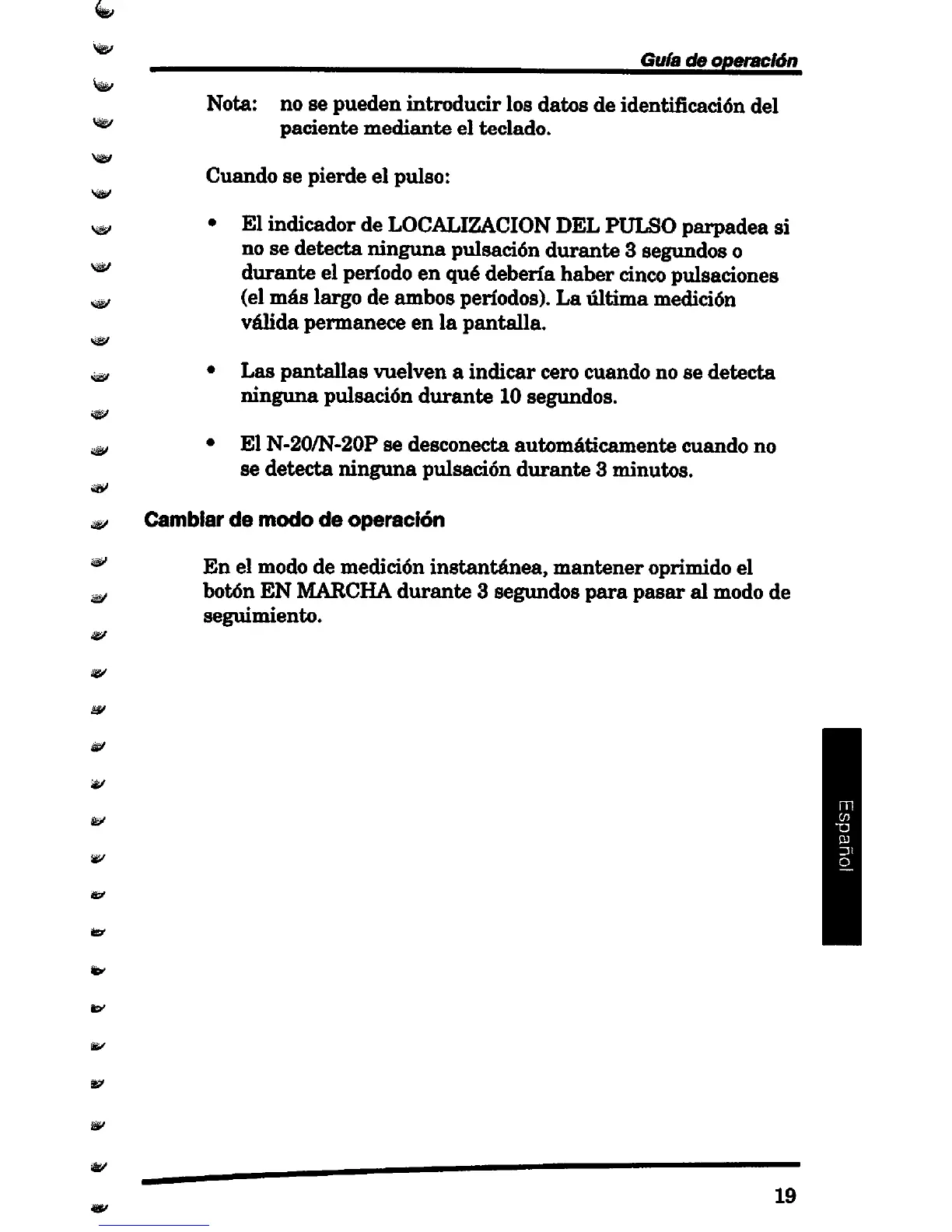 El indicador de LOCALIZACIONDEL PULSO parpadea si