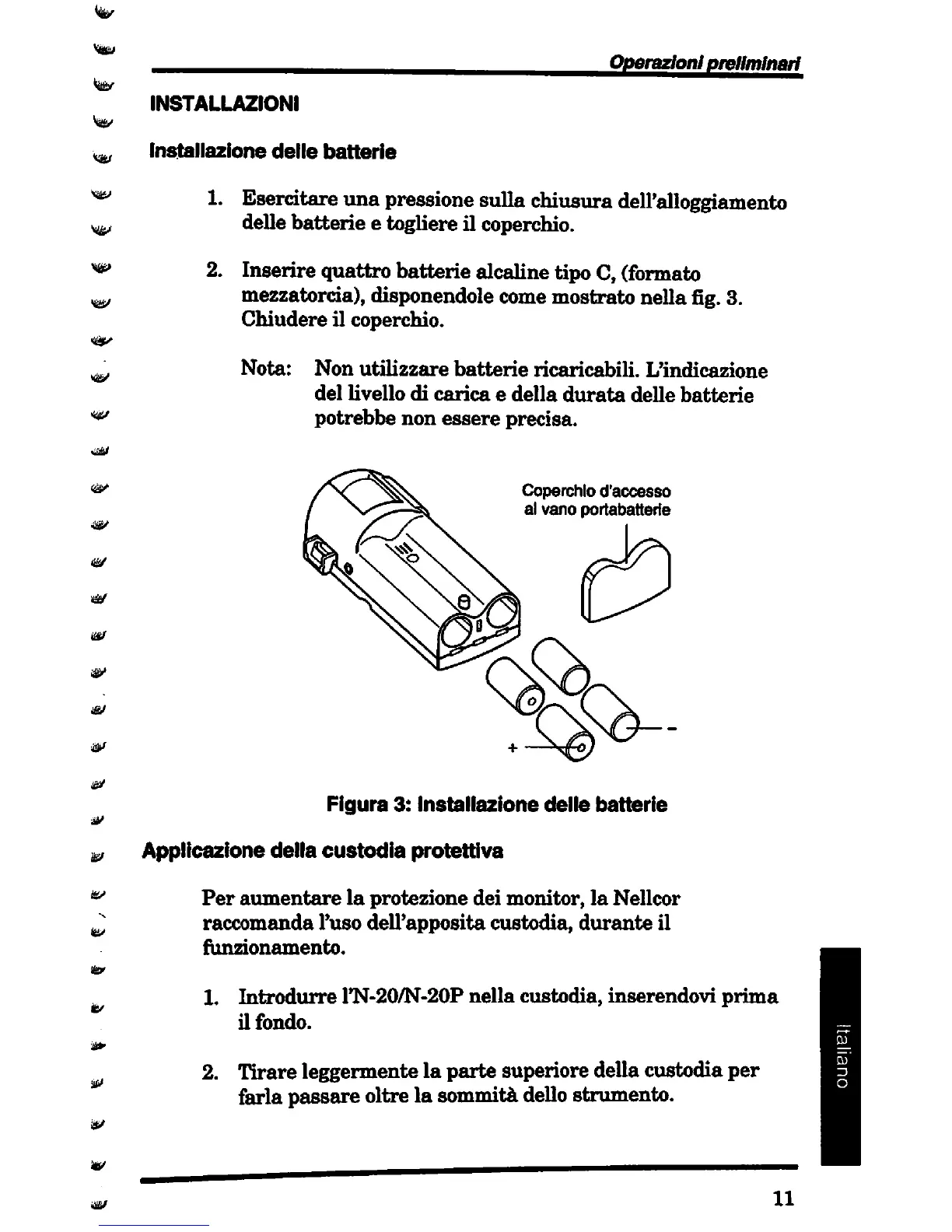 Nellcor N-20 - Installazioni; Installazione Delle Batterie; Applicazlone Della Custodia Protettiva