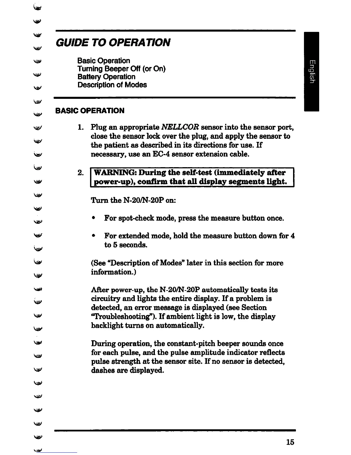 Nellcor N-20 - Guide to Operation; Basic Operation