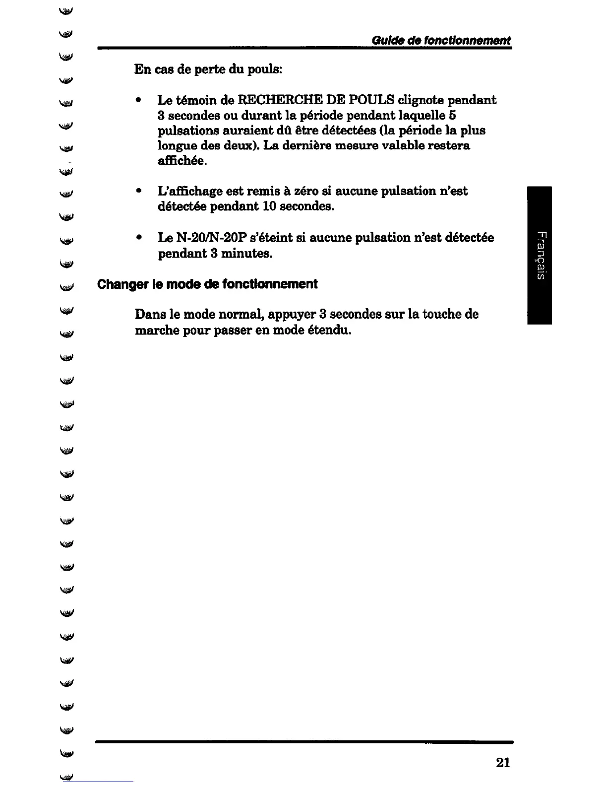 Nellcor N-20 - Changer Le Mode de Fonctionnement