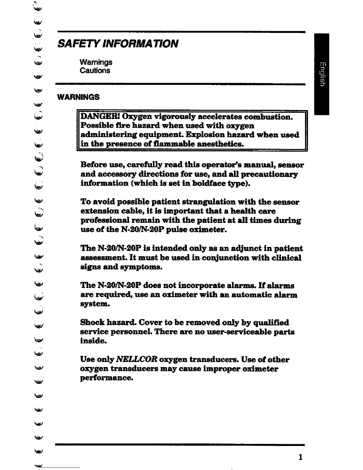 Nellcor N-20 - Safety Information; Warnings