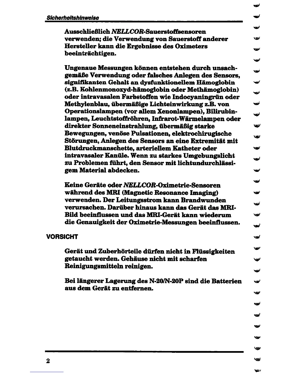 Nellcor N-20 - Vorsicht