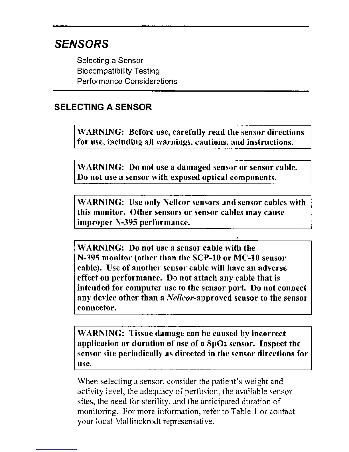 WARNING: Use only Nellcor sensors and sensor cables with