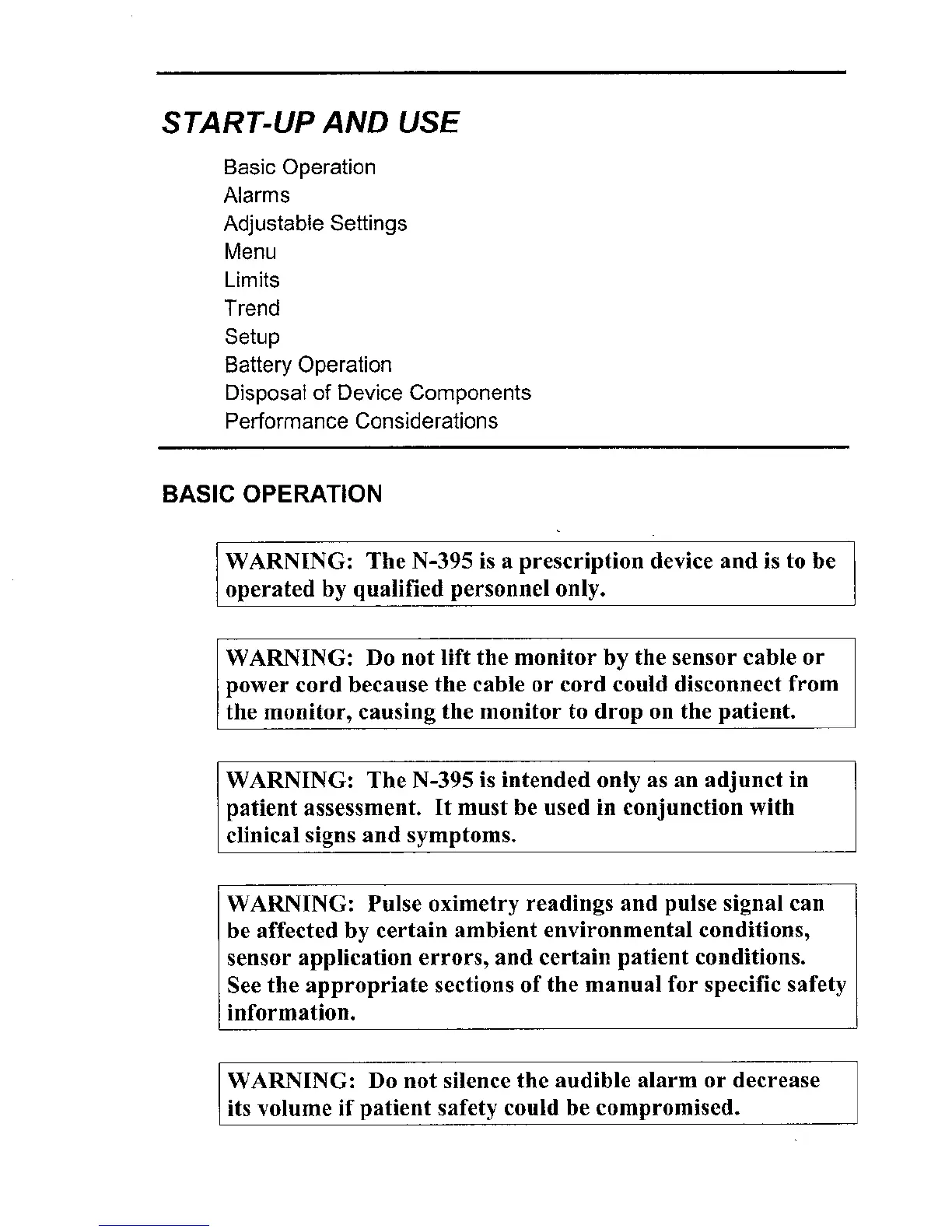 START-UP AND USE