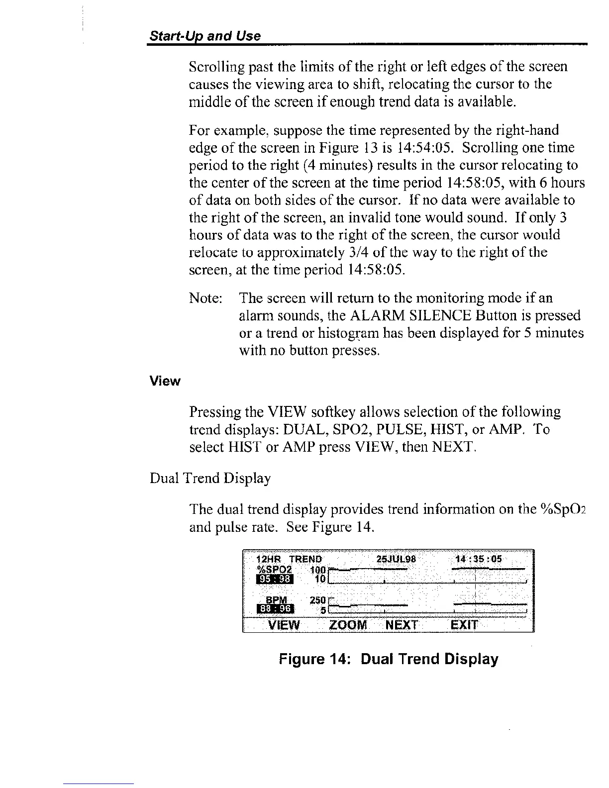 trend display provides trend information on the %SpOz