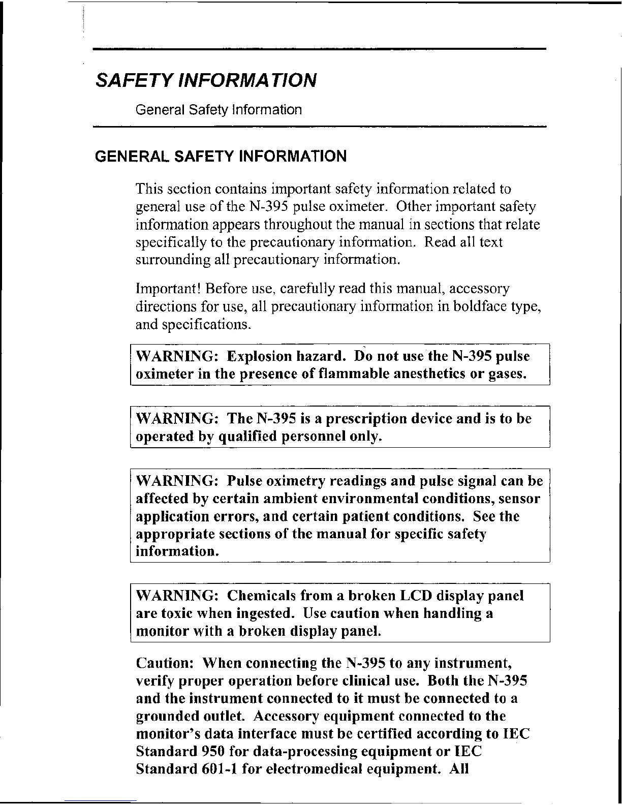 GENERAL SAFETY INFORMATION