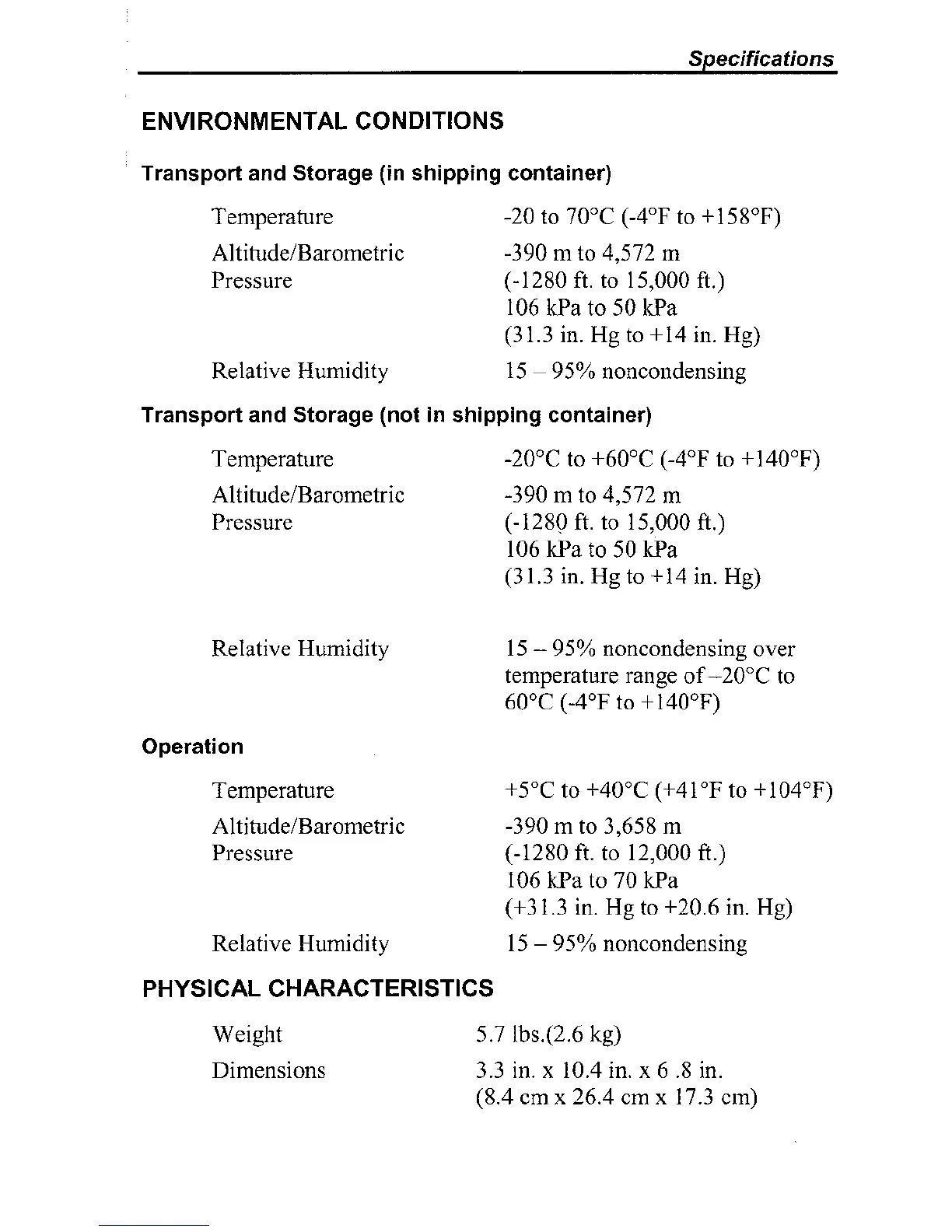 +5"C to +40°C (+41°F to +104"F)