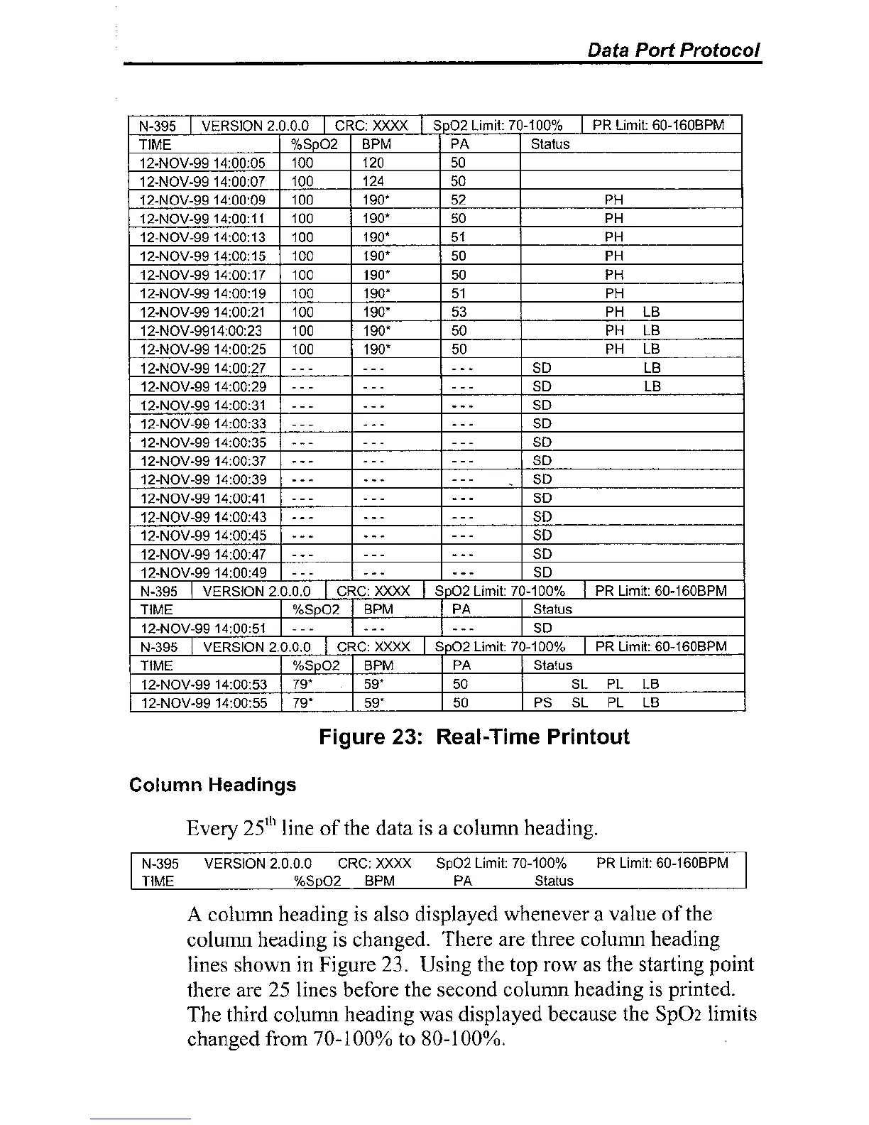 TIME %Sp02 BPM PA Status