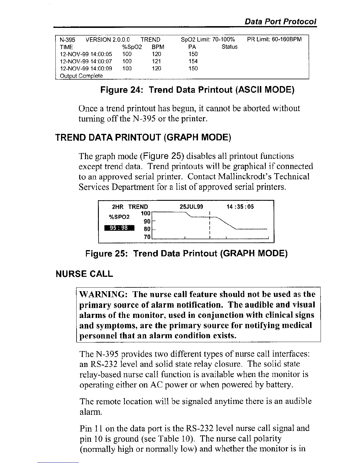 to an approved serial printer. Contact Mallinckrodt's Technical