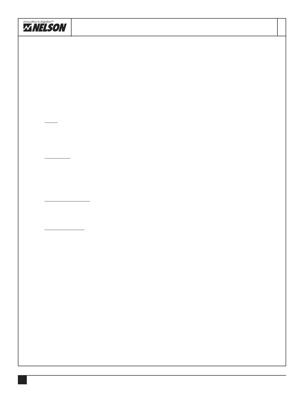 Nelson Irrigation Corp. 848 Airport Rd. Walla Walla, WA 99362-2271 USA Tel: 509.525.7660 Fax: 509.525.7907 E-mail: info@nelsonirrigation.com Web site: www.nelsonirrigation.com