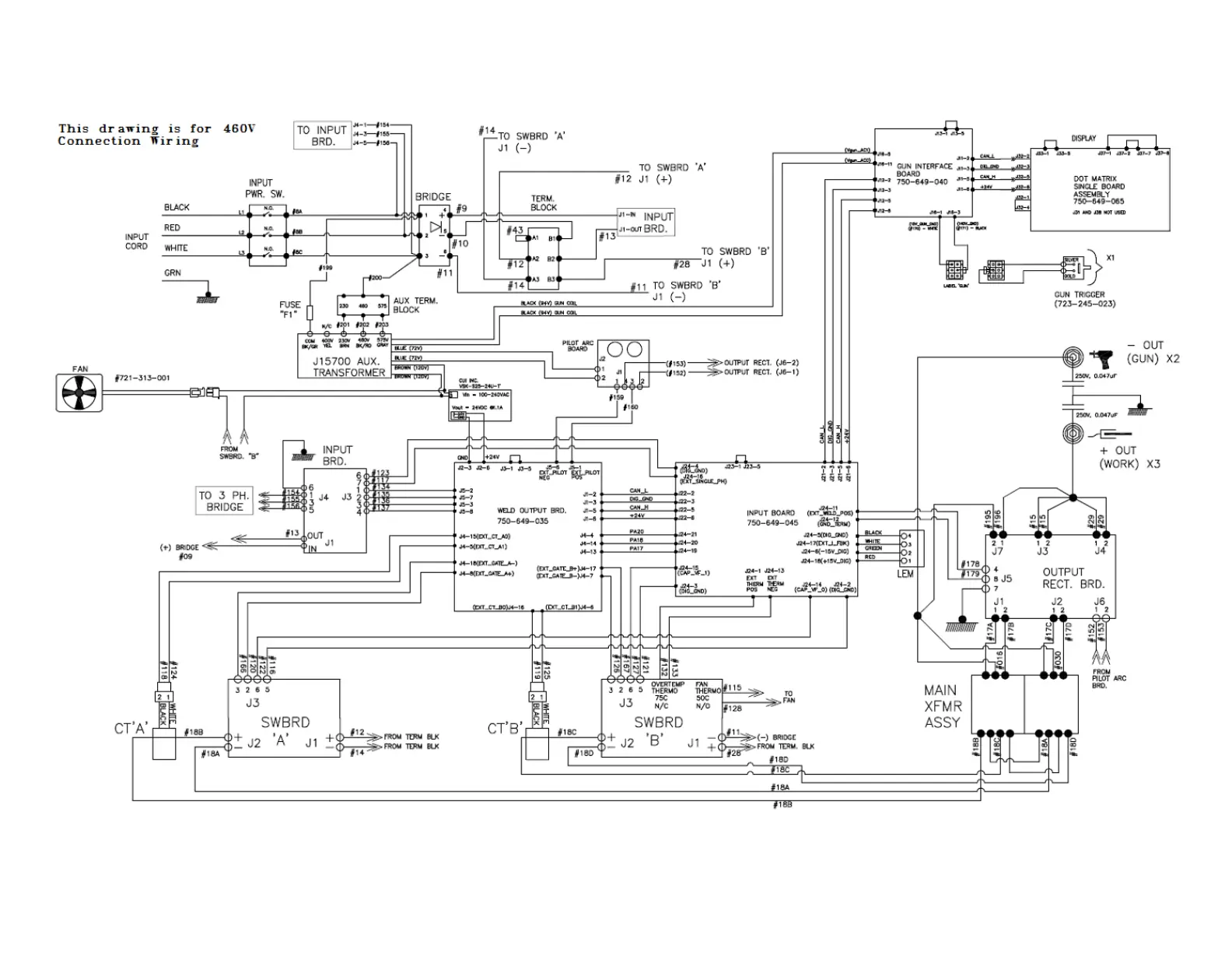 For 575 units: move the #200 wire, add the #203 wire, and change the rating plate to PN 724-574-000