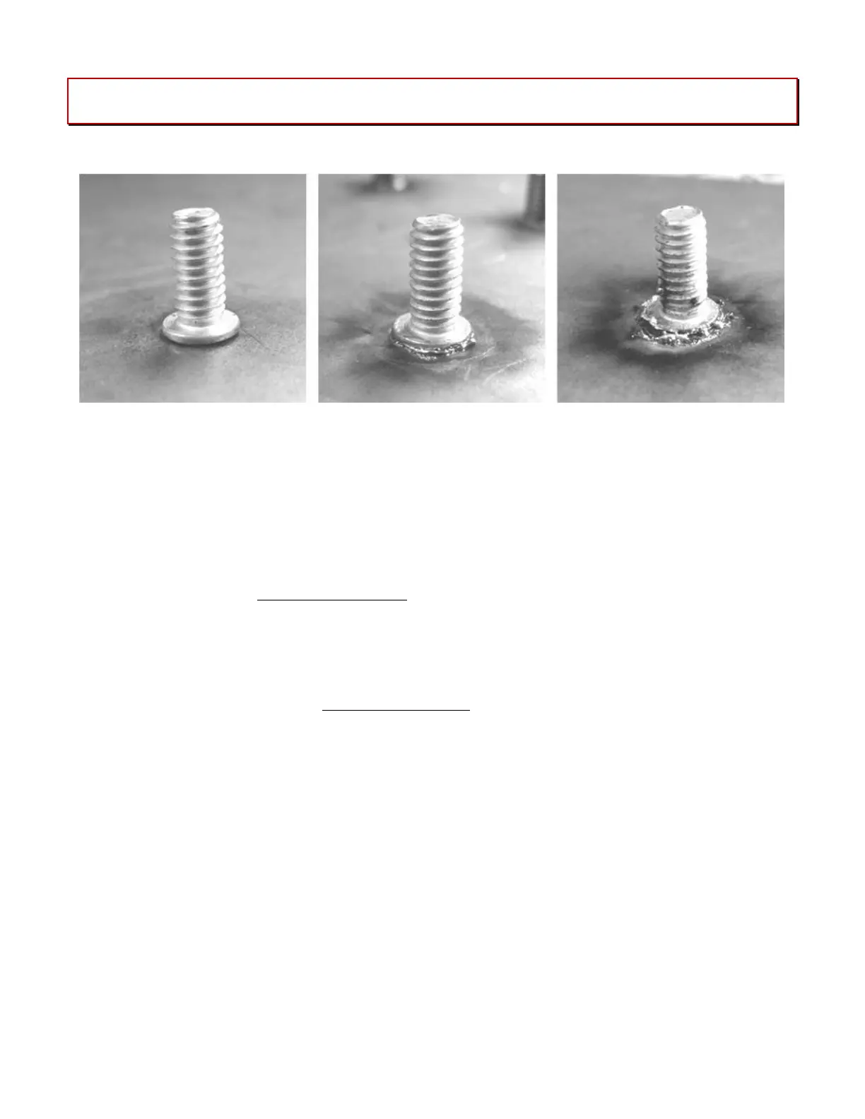 If visually inspecting the welds reveals a questionable weld, the weld should be physically tested. Initial weld set
