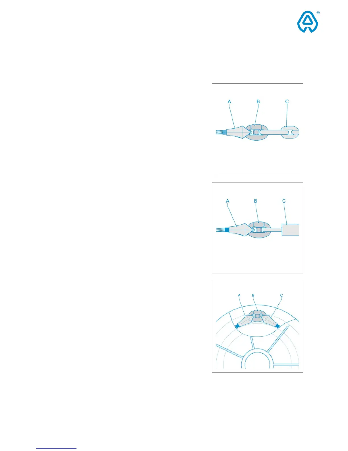2 outer ends of steel wire ropes fitted with NEMAG Rope Pear Sockets (A, C).