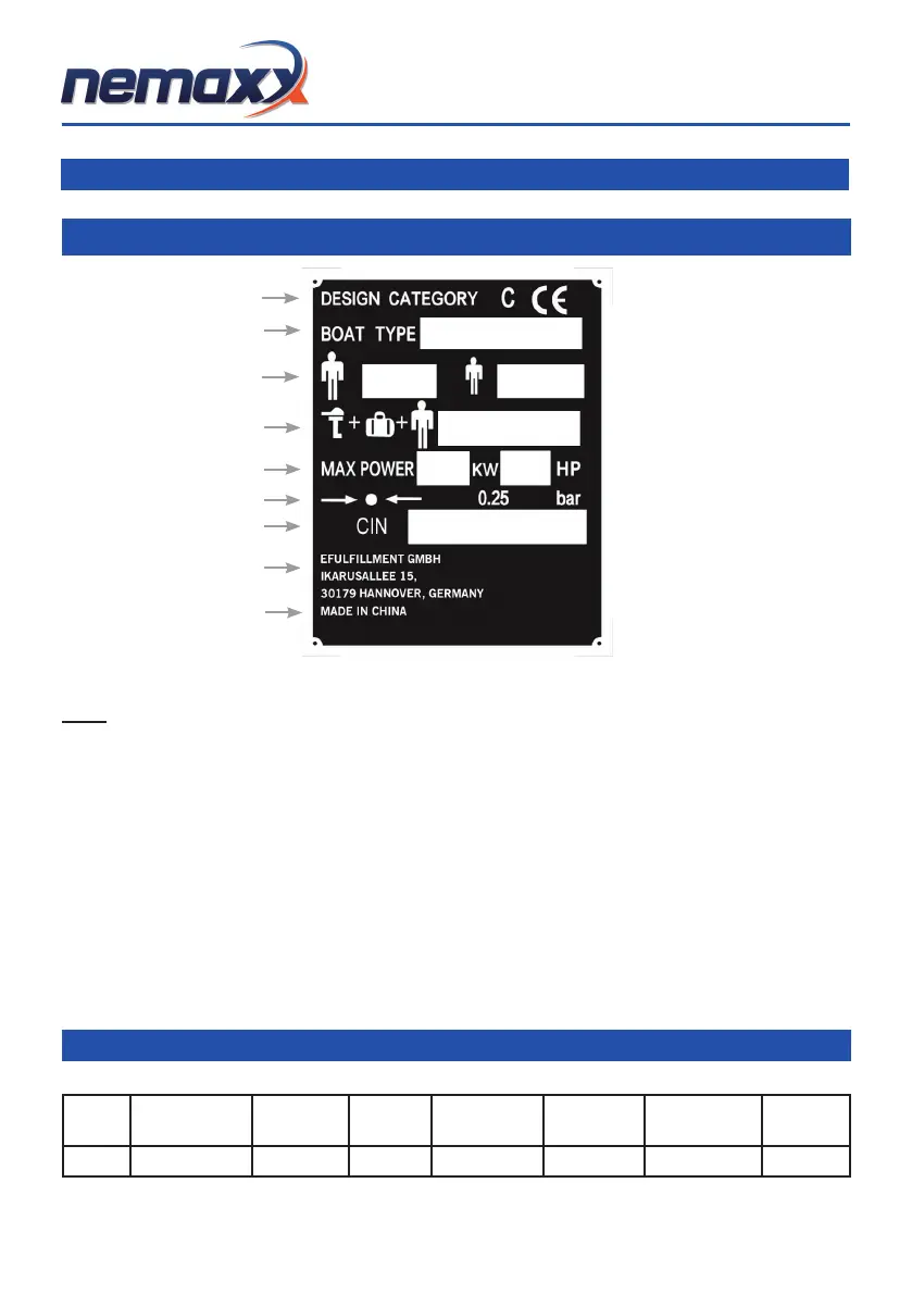 d) Maximum payload: persons + outboard engine + fuel tank + equipment