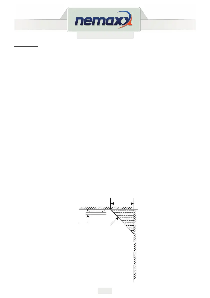 • Si le détecteur n‘a pas pu être installé au milieu du plafond pour certaines raisons,