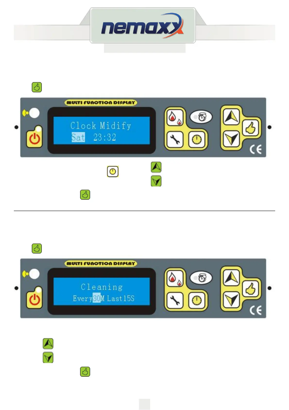 You can adjust the time of cleaning during the operation- “every X mins, last Y” Seconds to cleaning the