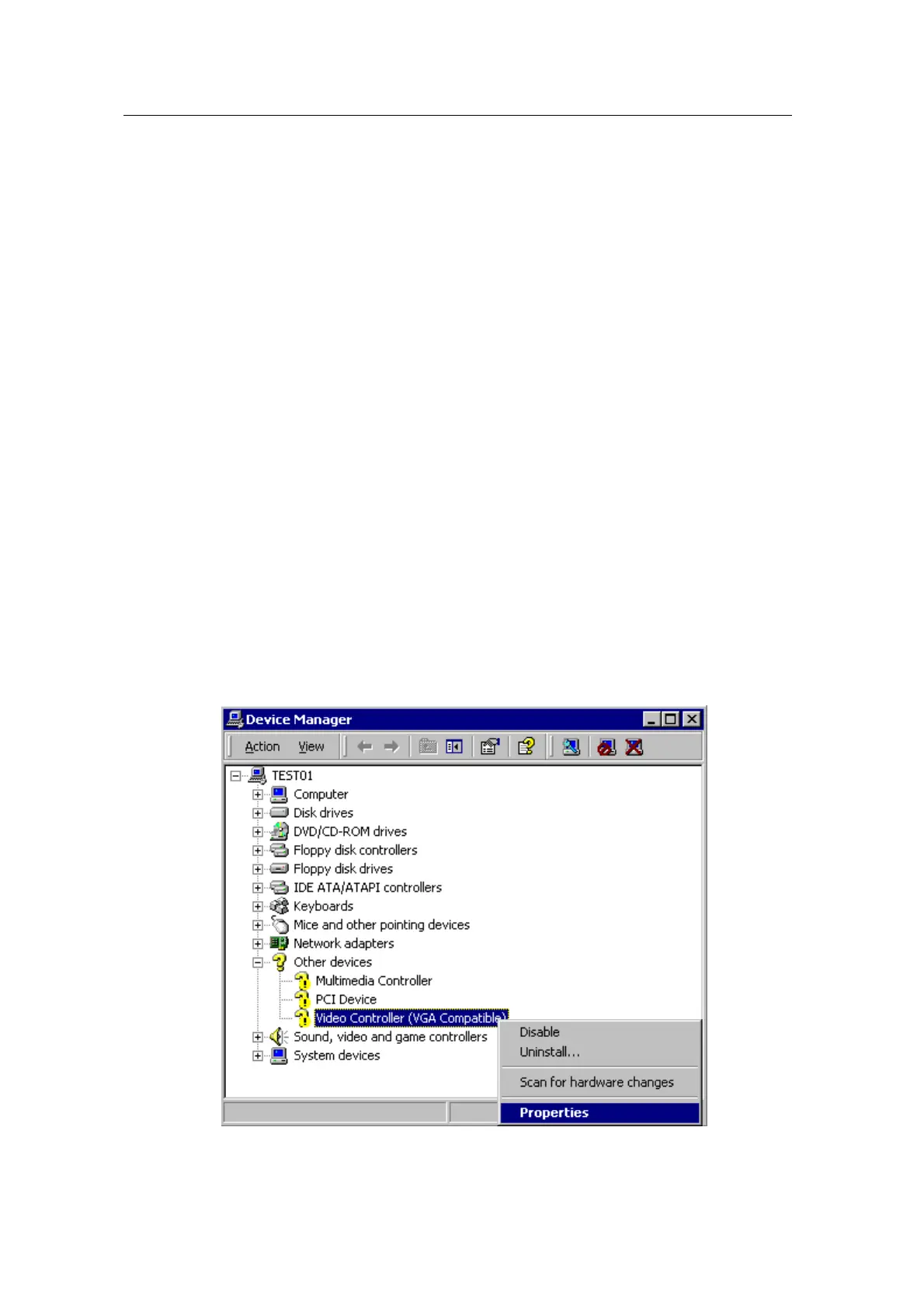 4. Click “Video controller (VGA compatible)” using Mouse right button and select