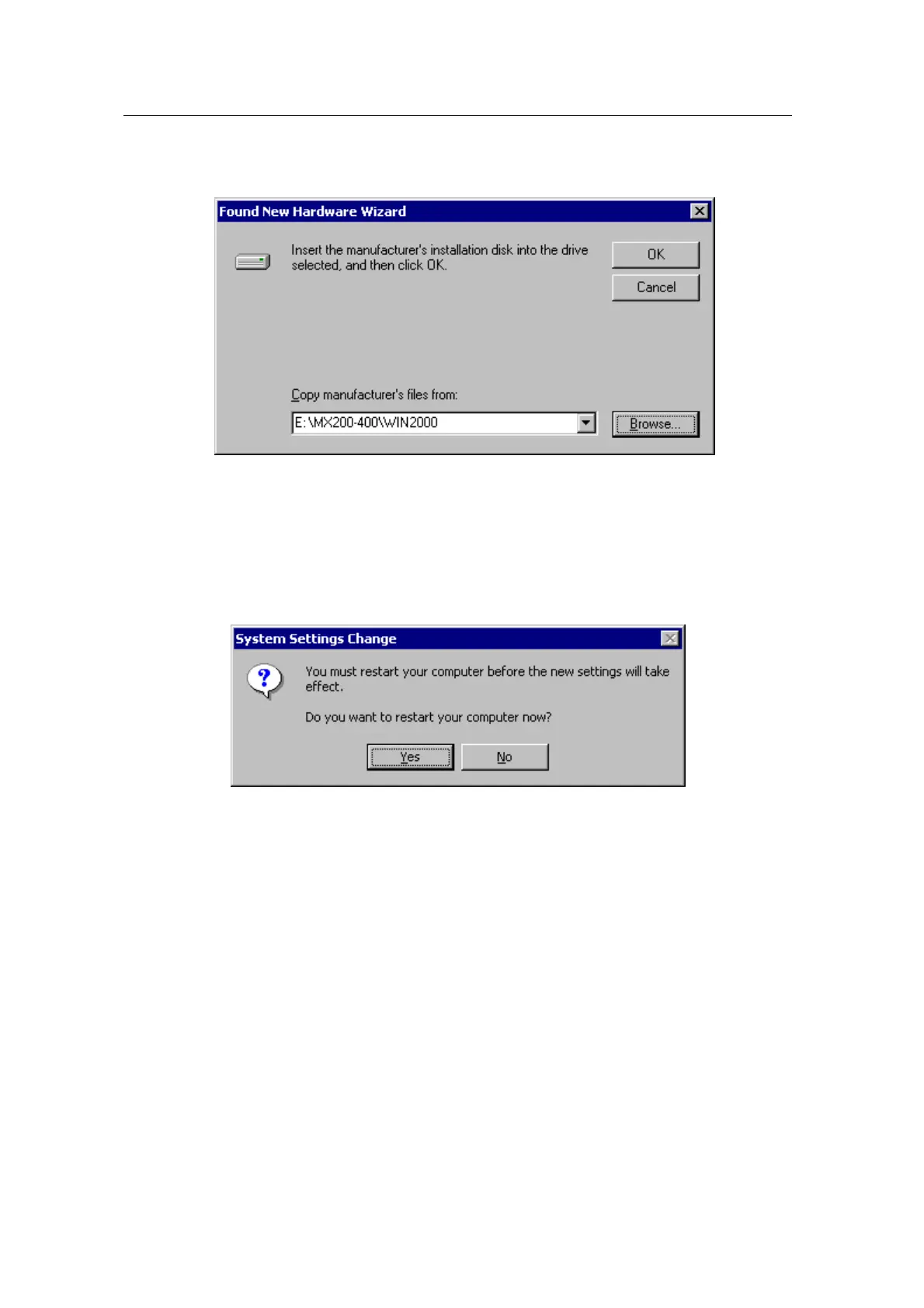 5. Select “WIN2000” folder on “\MX200-400” folder of CD-ROM drive by using “Browse”