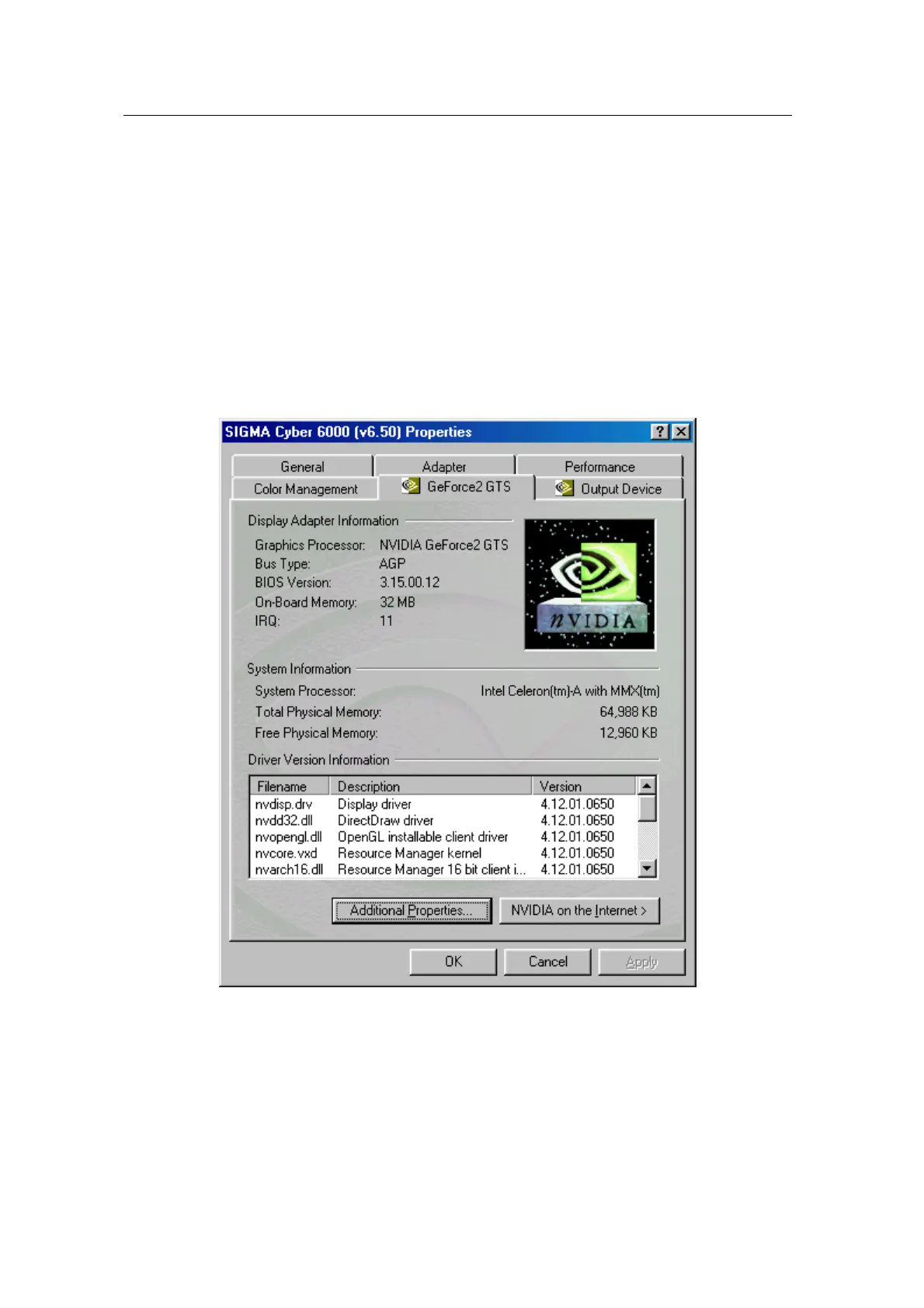 memory size appears. And more functions such as Gamma correction, 3D features, OpenGL