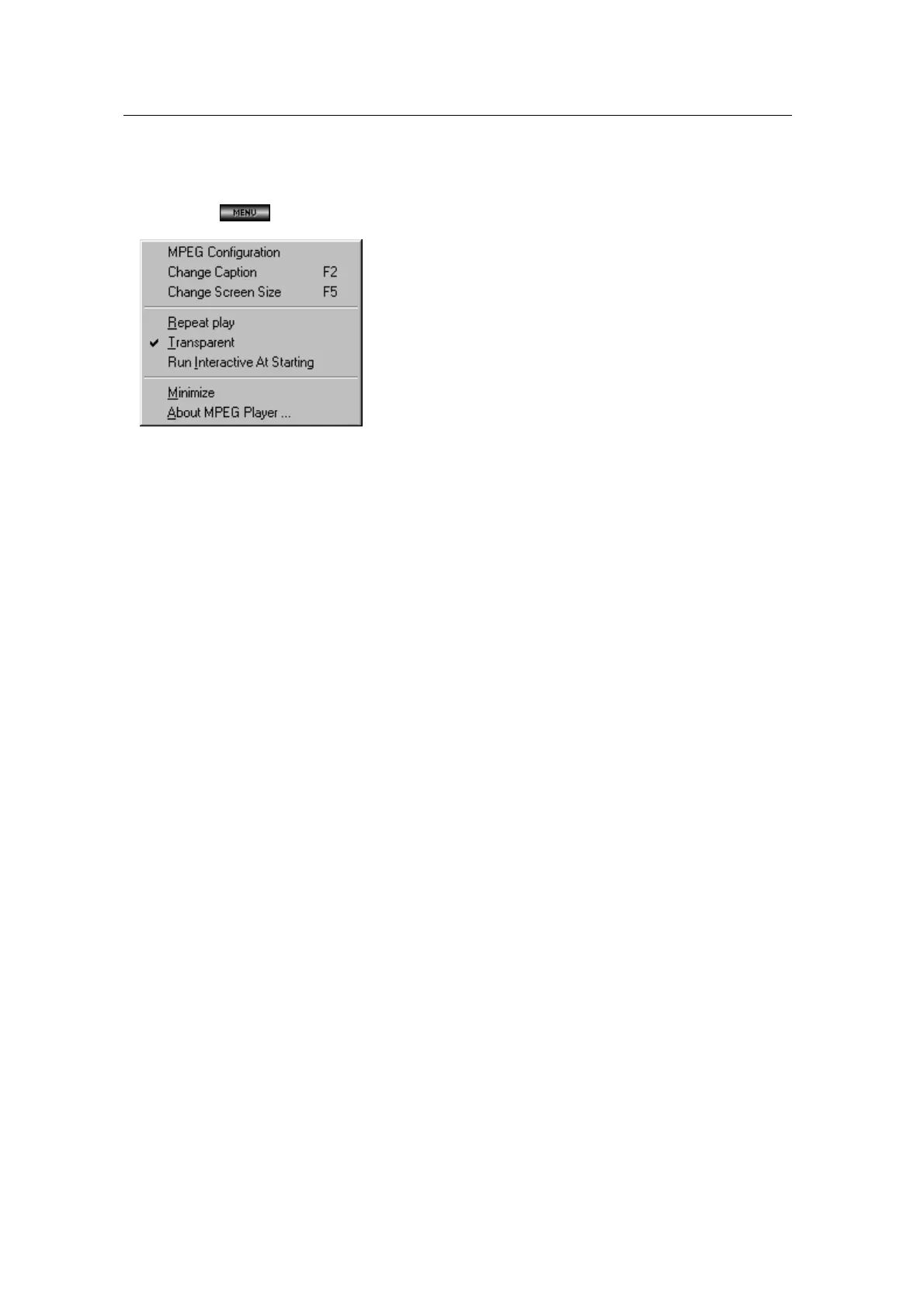 Sets MPEG configuration for audio channel, volume control, screen size and DirectDraw.
