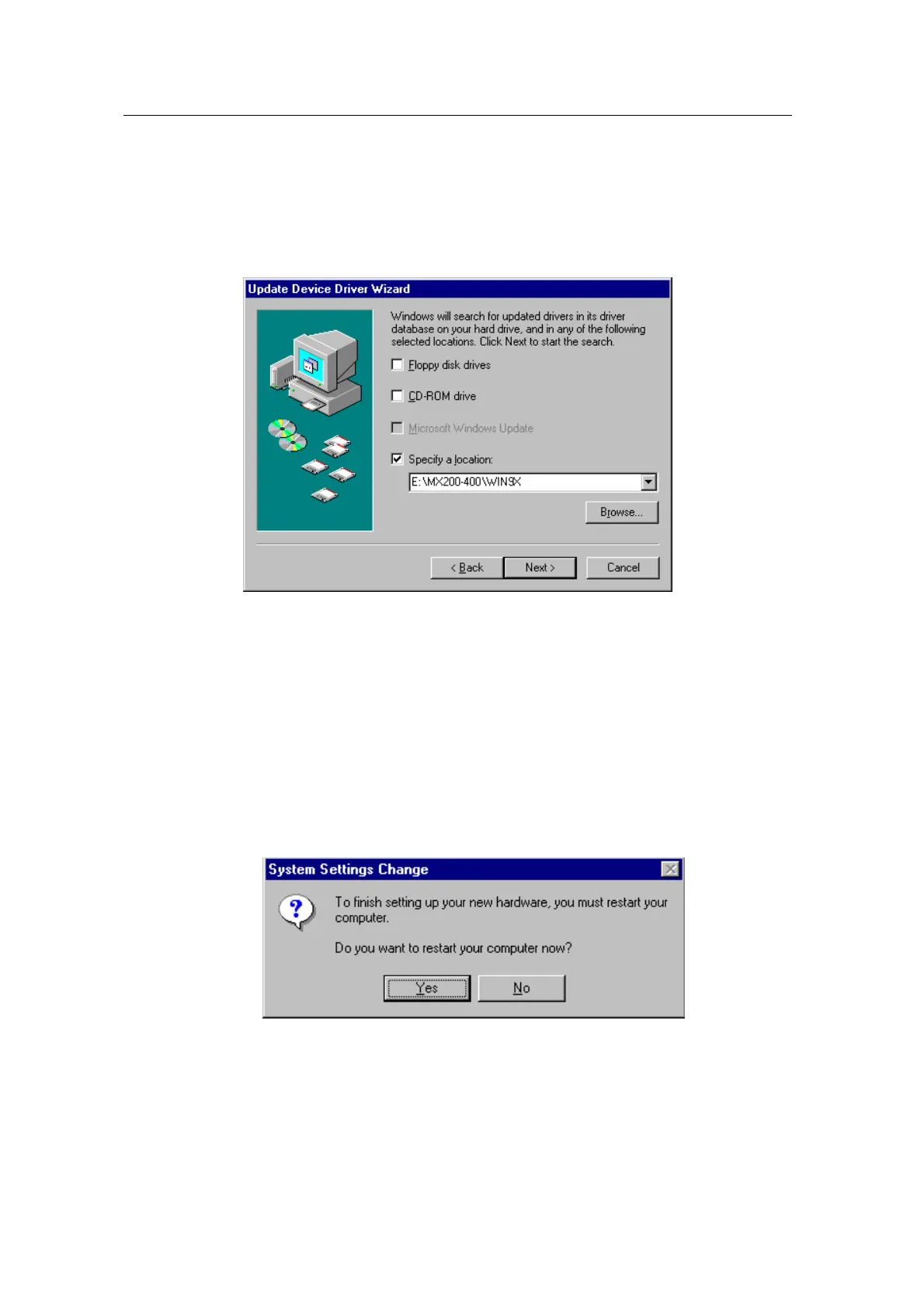 8. Select “WIN9X” folder on “MX200-400” folder of CD-ROM drive by using “Browse…” button