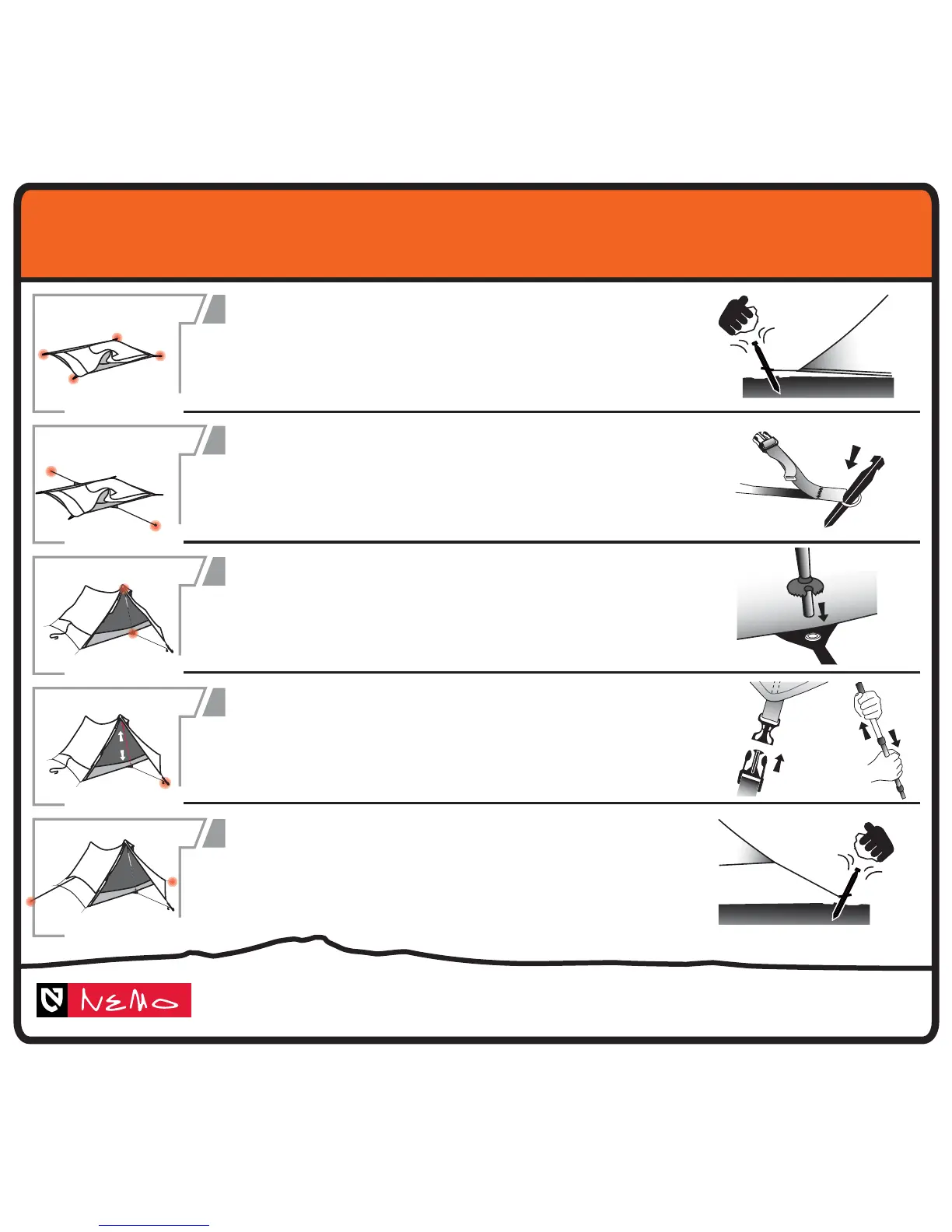 Repeat for webbing strap on opposite side of the tent.
