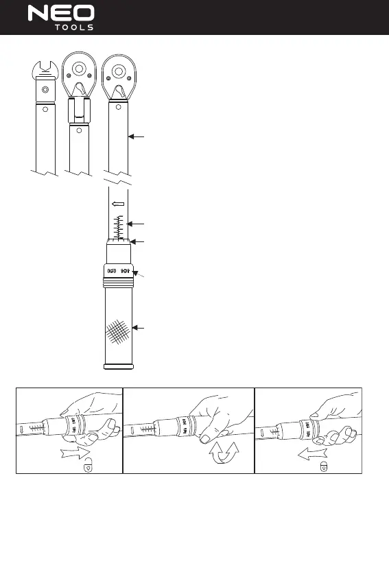 2. Turn the grip in the clockwise direction to increase the torque, and in the counterclockwise to decrease it.