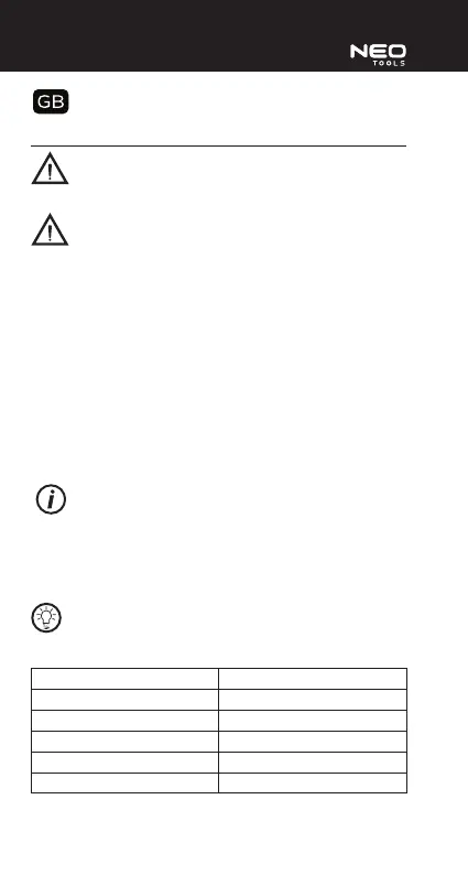 9. The tool is equipped with class 2 laser device compliant with EN 60825-