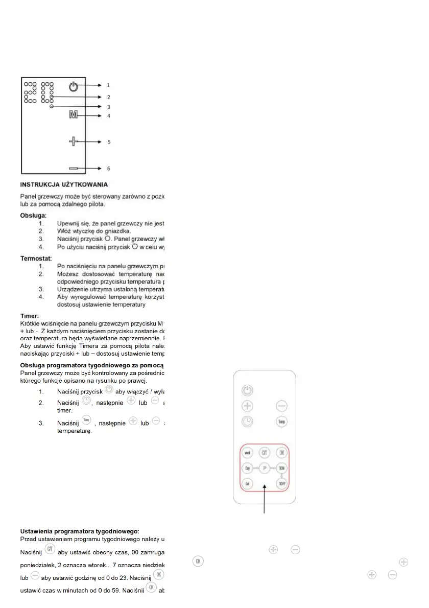 Krótkie wciśnięcie na panelu grzewczym przycisku M włączy timer. Możesz ustalić czas po jakim panel grzewczy wyłączy się naciskając przyciski