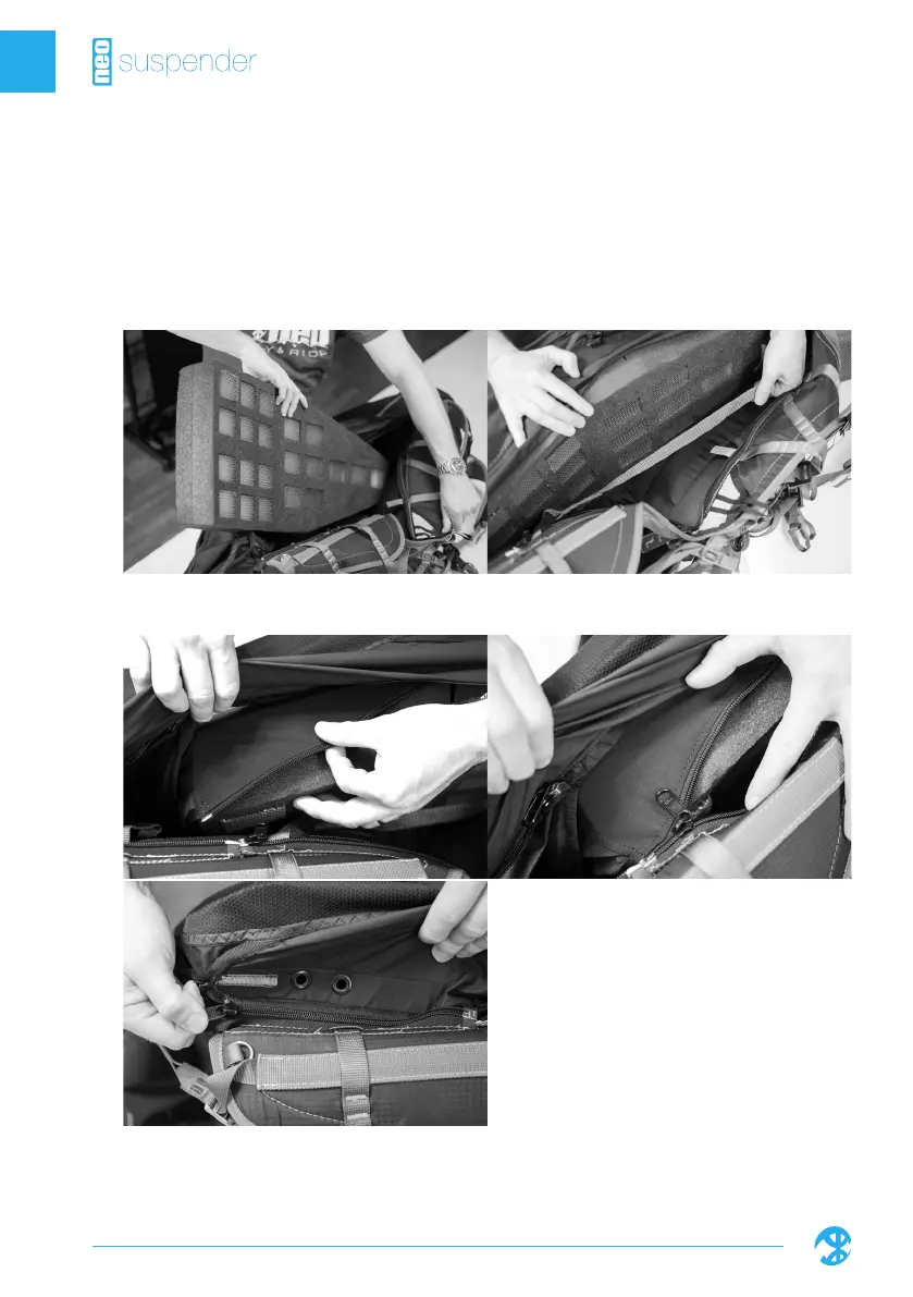 Refermer le zip de maintien de la poche du parachute de secours. Pour réinstaller