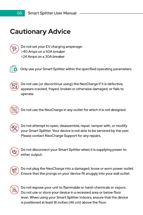 Do not use the NeoCharge in any outlet for which it is not designed.