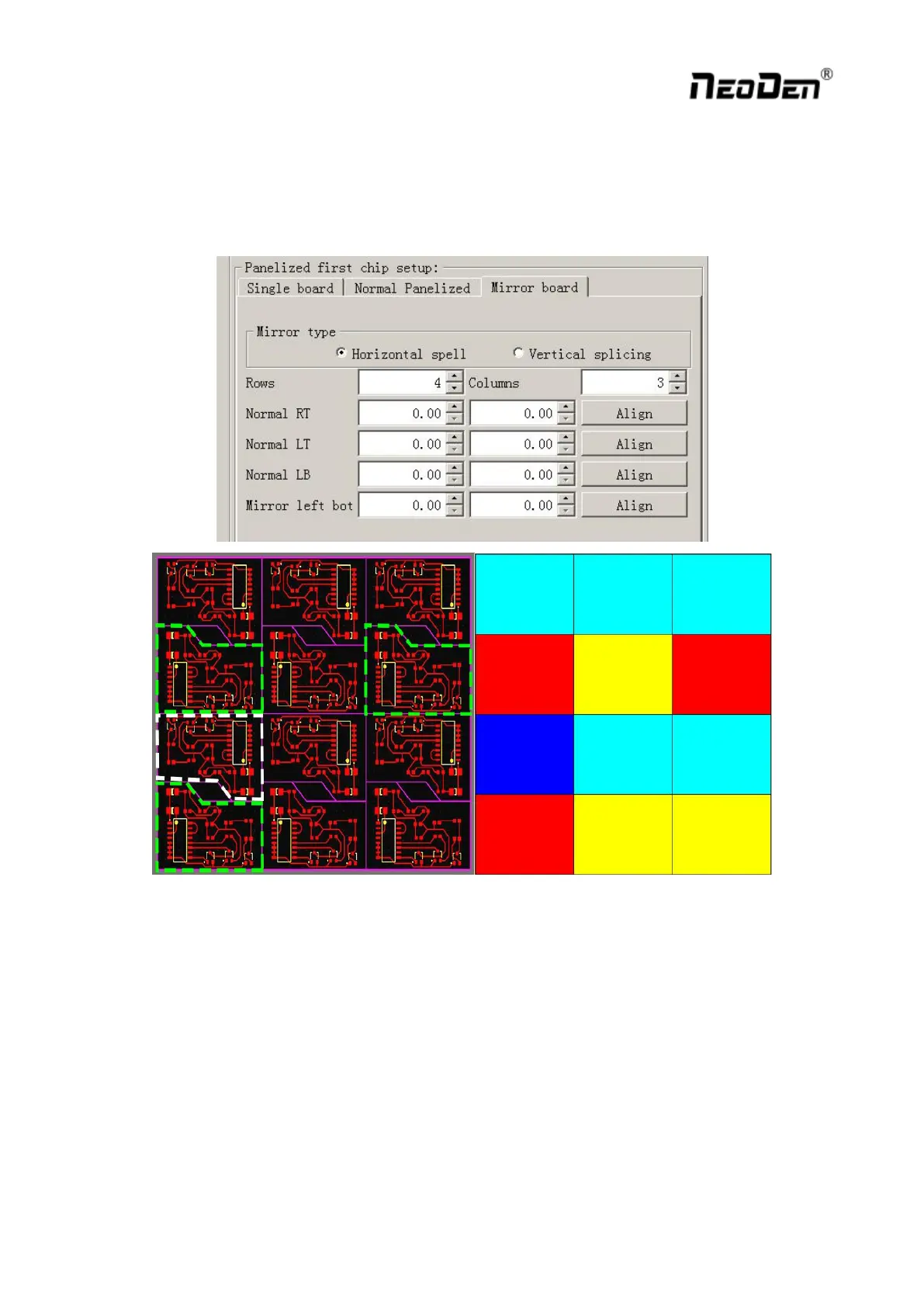 Row panelized: several same PCBs are arranged in horizontal direction, and the nearby rows are mirrored