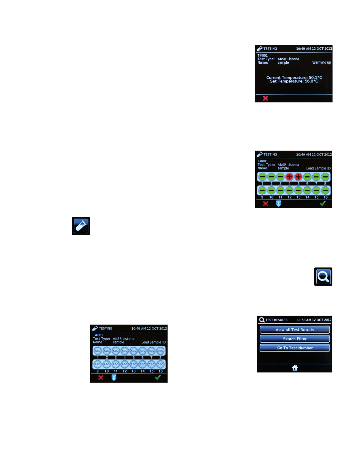 1. Touch the test tube (Run test) icon.