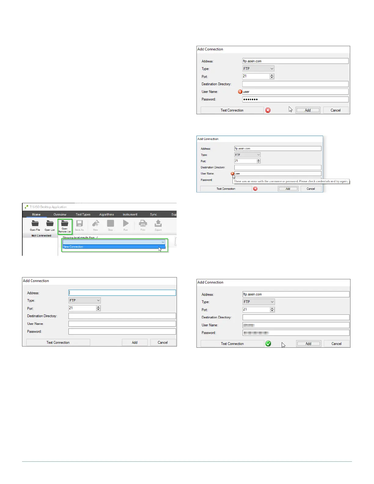 ingresados son válidos. Aparecerá un icono de error si la conexión no