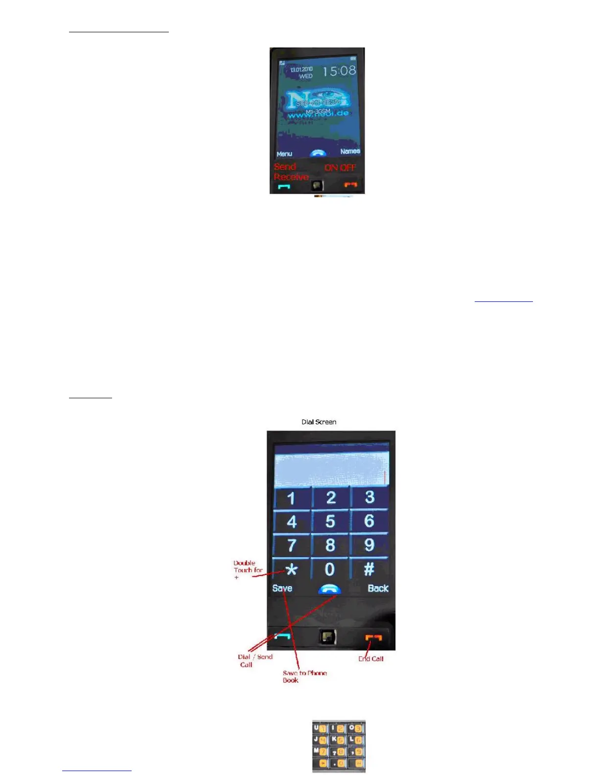 In home screen mode, enter numbers through the keypad, and press Dial to make calls, or press left soft key after dialling to save numbers.
