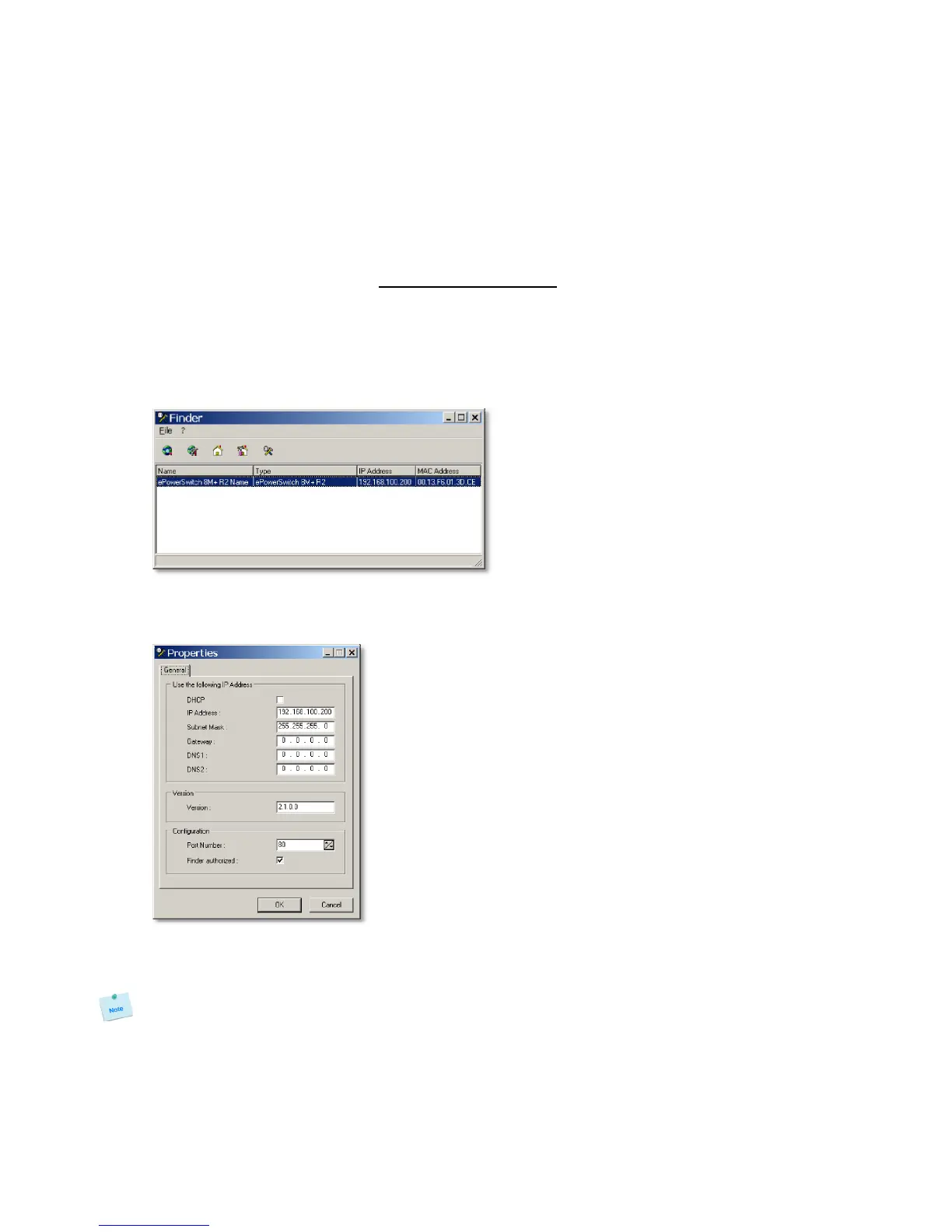 version of the Firmware. The HTTP protocol is enabled and the Finder program is authorized at factory
