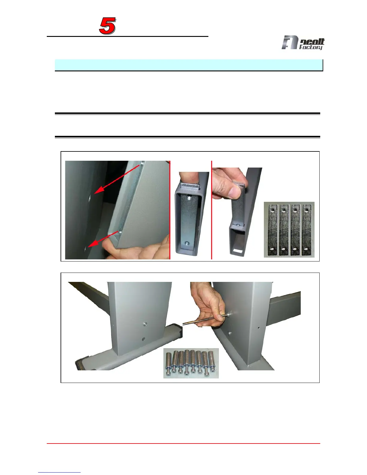 E), avvitare la traversa inferiore (fig. 5.2) alla spalla con le viti, le bussole e le