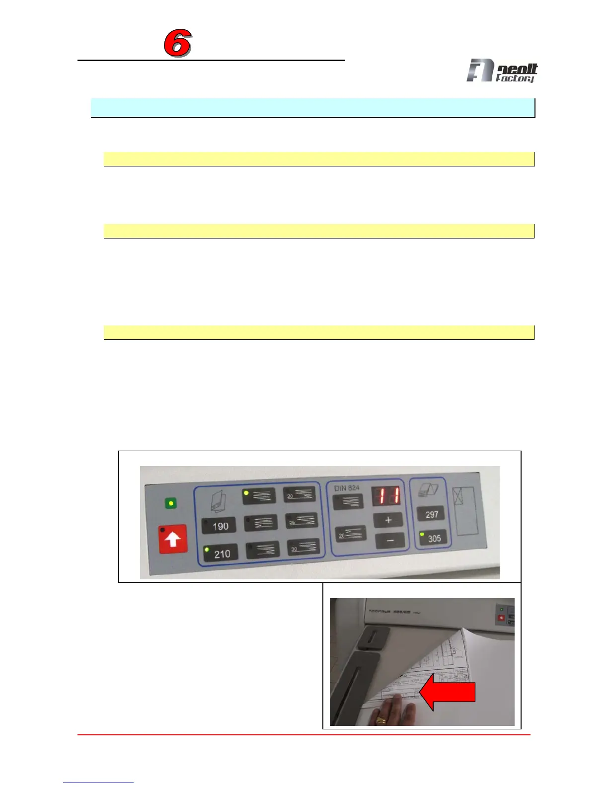 volta premuto l’interruttore generale la piegafogli è disposta per il formato “Piega libera