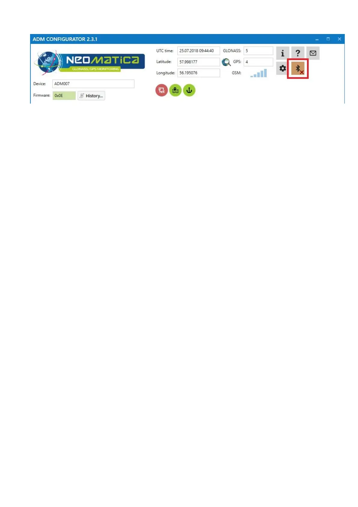 To configure the tracker via Bluetooth, you should use the "ADM Configurator" program. If a