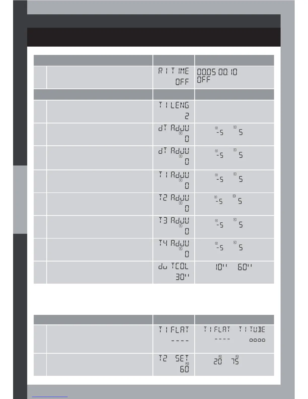5 T2 temperature zero adjustment value