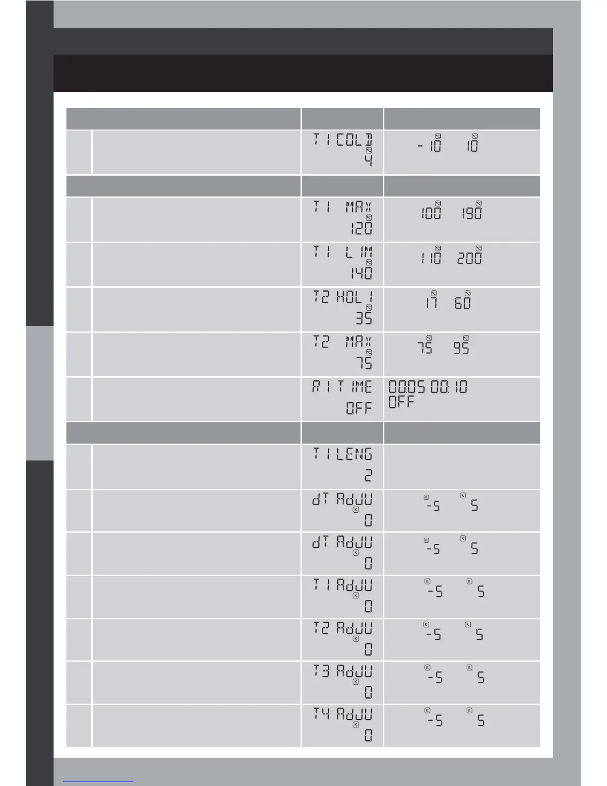 7 T4 temperature zero adjustment value