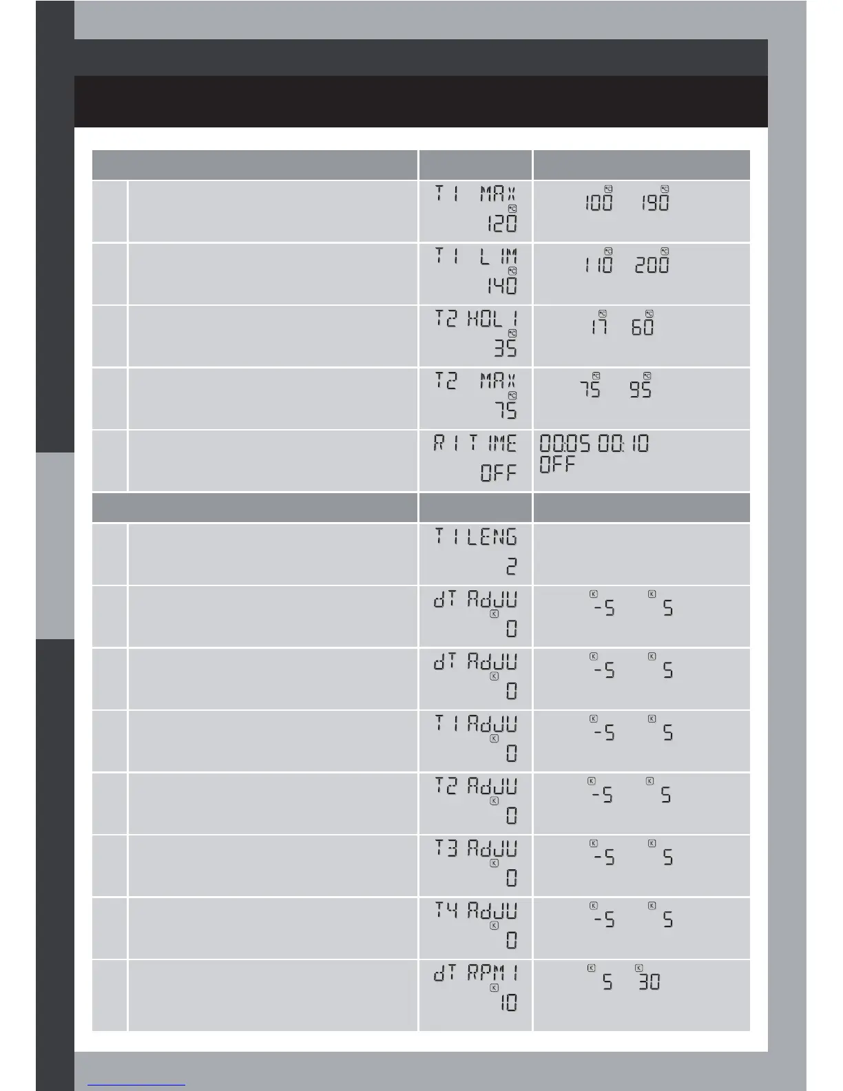 5 T2 temperature zero adjustment value