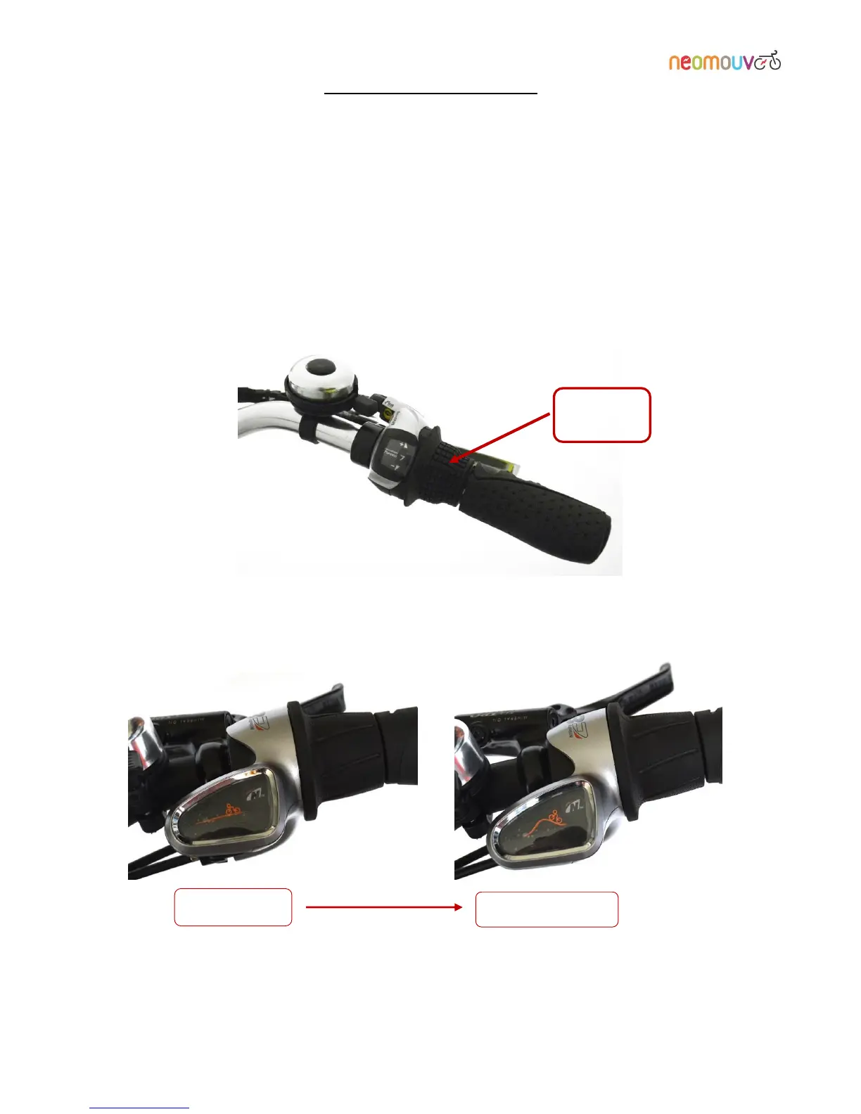 The (indexed) gear selector is located next to the right handle on the handlebars. Activate it in order to