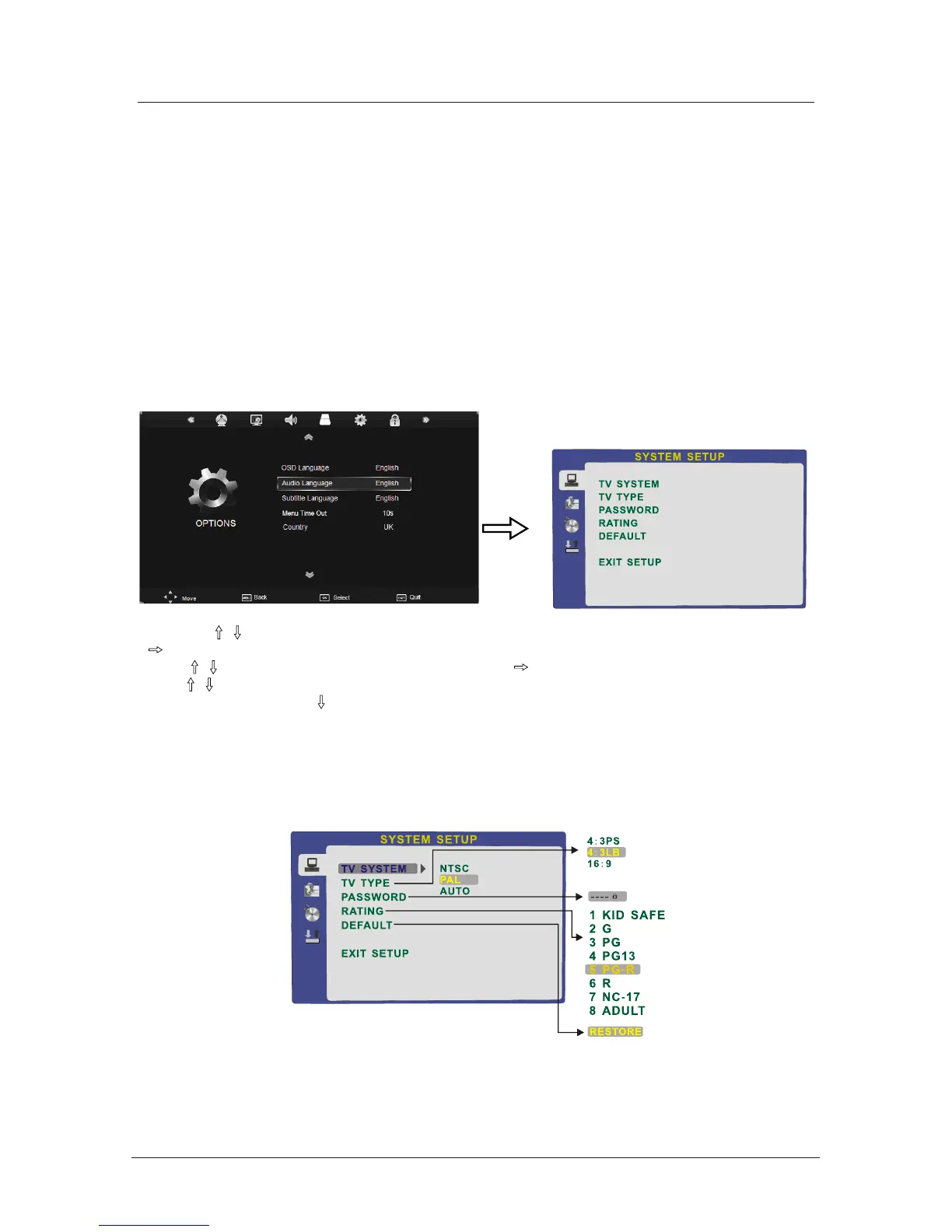 The system setup options are illustrated below: