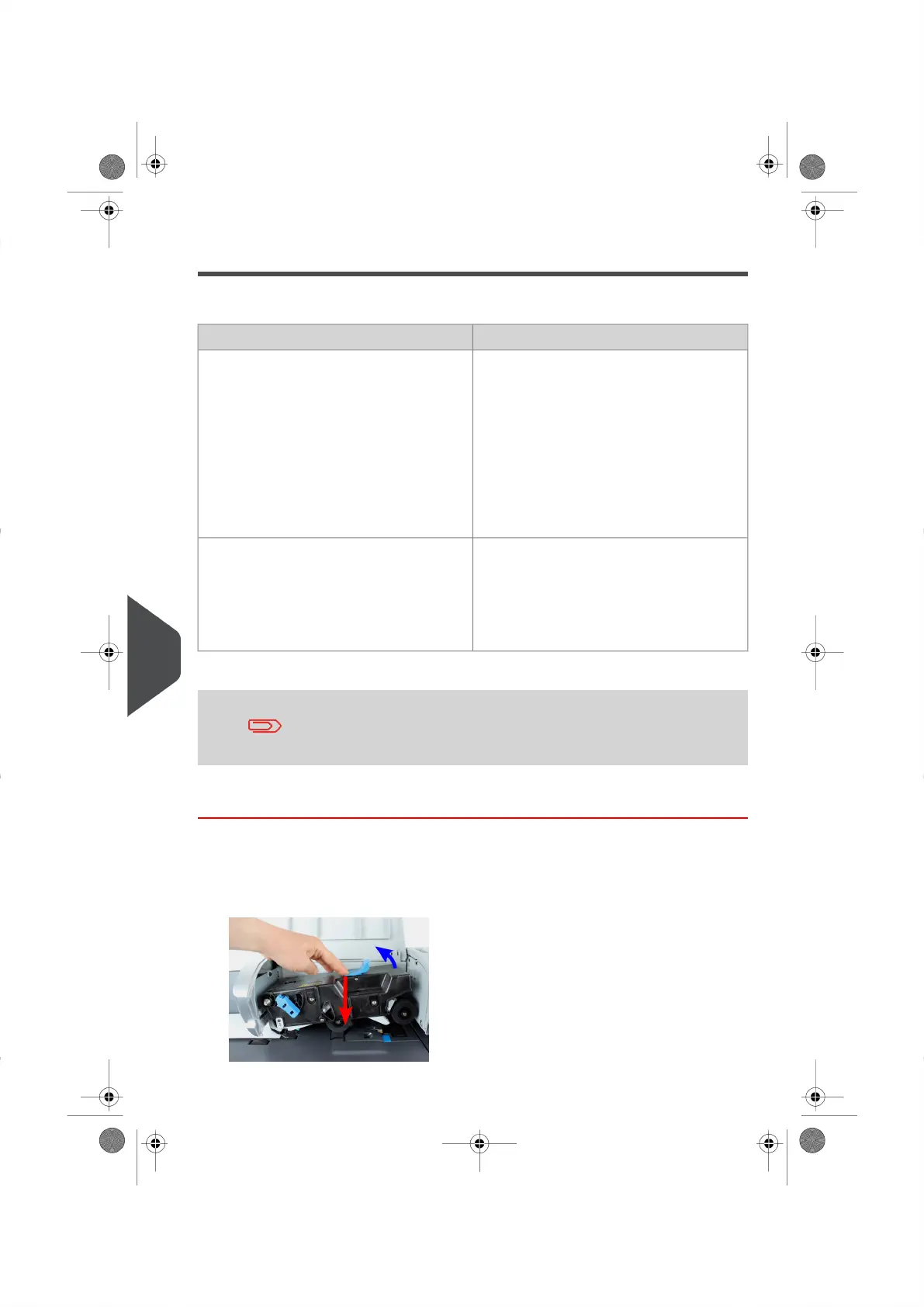 2. Push the left of the upper blue release lever to lift up the upper drive assembly.