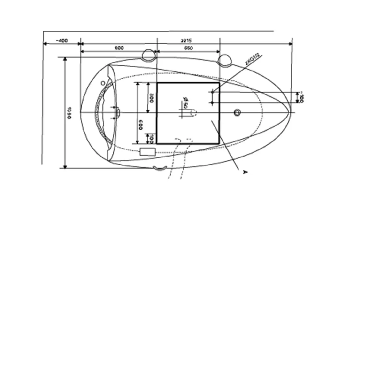A- area for the closable water inputs and for the water outlet 50 mm on the same level with