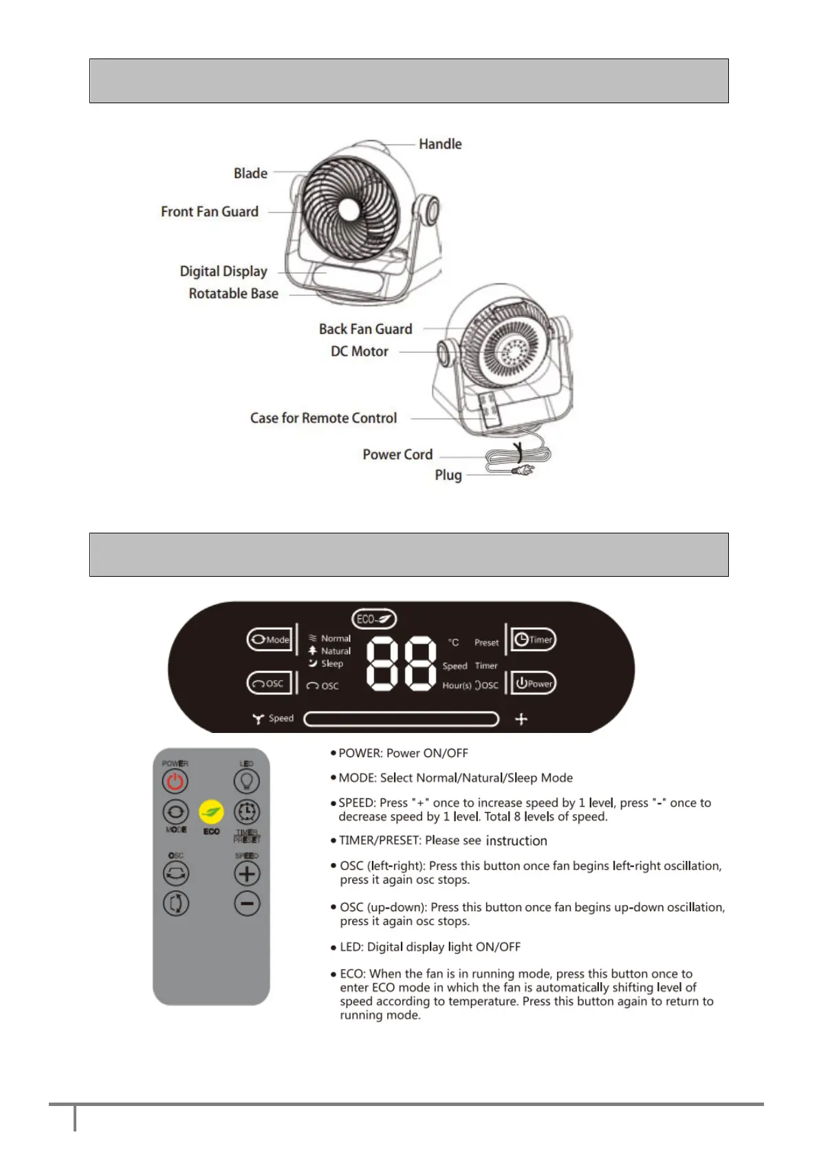 Neostar Electronics 318 4303 - Product Part Names; Control Panel and Remote Control Functions; Power On;Off; Mode Selection